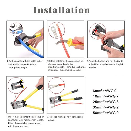 - ❤Praktischer Werkzeug für blanke Kabelschuhe 6-50 mm² (6, 10, 16, 25, 35, 50 mm²).