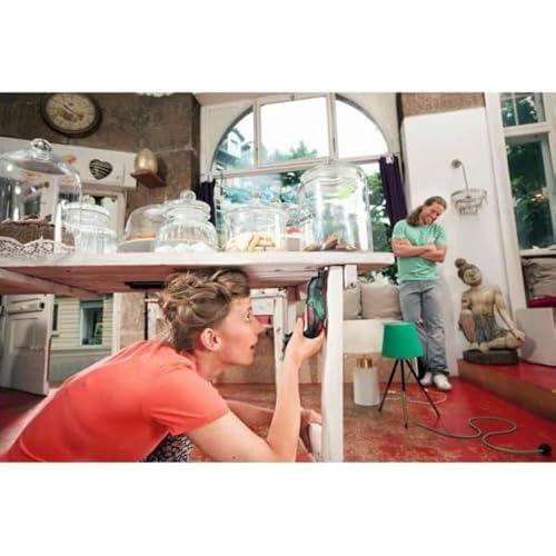 - Mit Winkel- und Exzenteraufsatz, damit auch an randnahen Stellen und in Ecken geschraubt werden kann