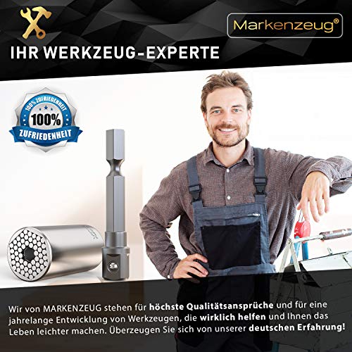 MARKENZEUG® Premium Universalschlüssel – Verbessertes Konzept 2021 I Universal-Steckschlüssel I Innovatives Werkzeug I Universal Nuss I praktisches Handwerkzeug mit Adapter 7-19mm I 2er Set vom Hersteller MARKENZEUG