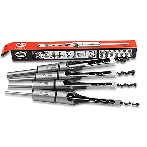 - Satz von 4 Vierkantloch-Bohrer-Bohrmeißel-Set, 1/4 "(6,35 mm), 5/16" (7,94 mm), 3/8 "(9,5 mm), 1/2" (12,7 mm), extra lang Bohrkern -über 210mm