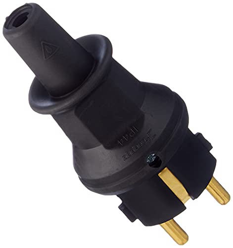 Schutzkontakt-Stecker mit Knickschutztülle, IP44 Schutzklasse, spritzwassergeschützt, 250V (16A) bruchfest, schwarz, 173016046 vom Hersteller Kopp