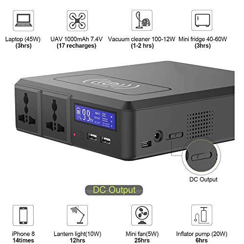 - ➤ Powerful in Small Size: Die stillen 154WH 416000mAh (FSK: 150W) Lithium-Ionen-Batterien wiegen nur etwa 1,32 kg mit Größe 20 * 17 * 4,8 cm, möglicherweise die kleinste Größe auf dem Markt. In etwa 15-mal für iphone 8, 5-mal für ipad mini3, 4 Stunden für 40W Mini-Kühlschrank und vieles mehr.