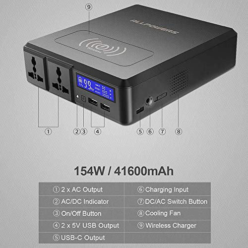 Tragbare Power Station 154 W 41600 mAh Generator-Netzteil mit kabelloser Aufladung, zwei 220-V-Wechselstromsteckdosen, 2 USB-Anschlüssen, USB C für Camping im Freien zu Hause oder Notfallsicherung vom Hersteller Generatoren