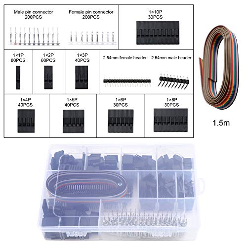 - Steckverbinder-Kit: Eine Vielzahl von Steckverbindern: 200 Stück Crimp-Buchsen- und 200 Stück Crimp-Steckerstifte, 10 Stück Buchsen- und 10 Stück 2,54 mm 40-polige einreihige Stiftleisten, 350 Stück Gehäusereihen, 1P / 2P / 3P / 4P / 5P / 6P / 8P / 10P-Steckverbinder.